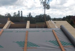 Provedli jsme kompletní dodávku střešní konstrukce na RD v Trutnově. Jedná se o novostavbu, kde jsme namontovali krov, odvětranou střechu s krytinou PREFA odstín tmavě hnědá P.10